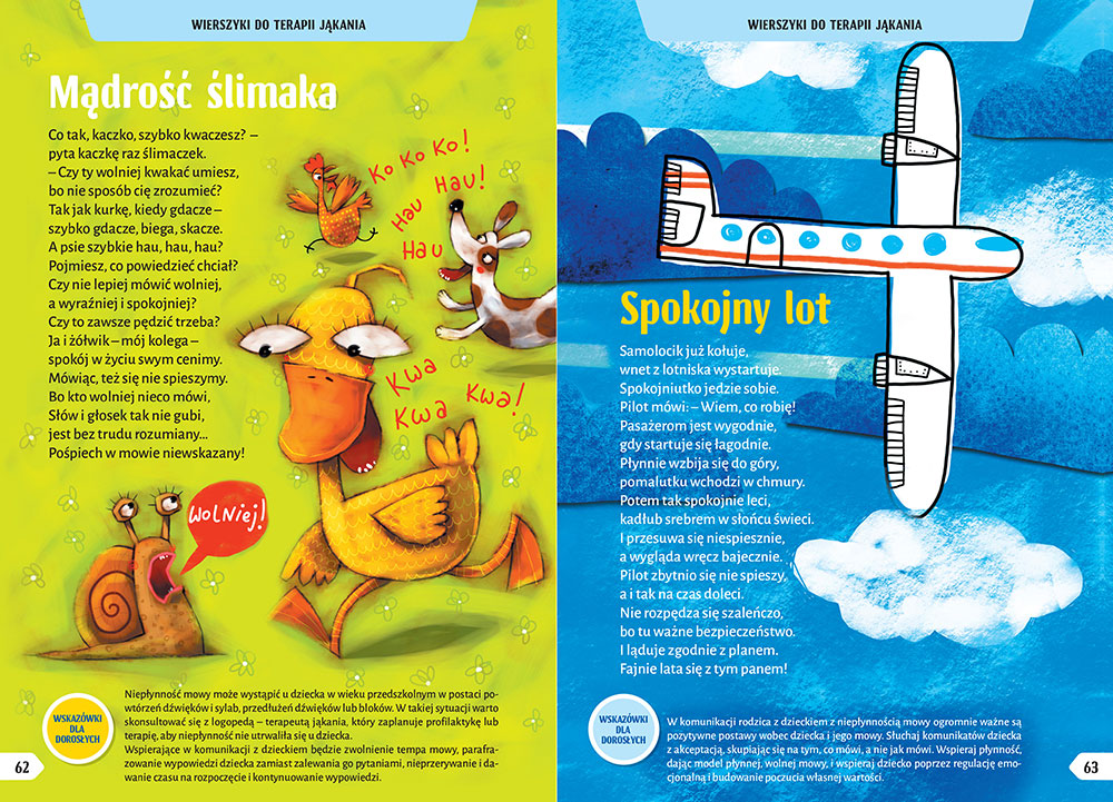 Przedstawimy wyj±tkow± ksi±¿kê, która zawiera starannie opracowane przez logopedów wiersze, pomocne w dynamicznym procesie nabywania mowy. Ka¿dy wiersz opatrzony jest wskazówkami, jak nale¿y æwiczyæ narz±dy artykulacyjne, by wymowa sta³a siê poprawna. Ksi±¿ka bêdzie idealn± pomoc± dla rodziców, logopedów i terapeutów.