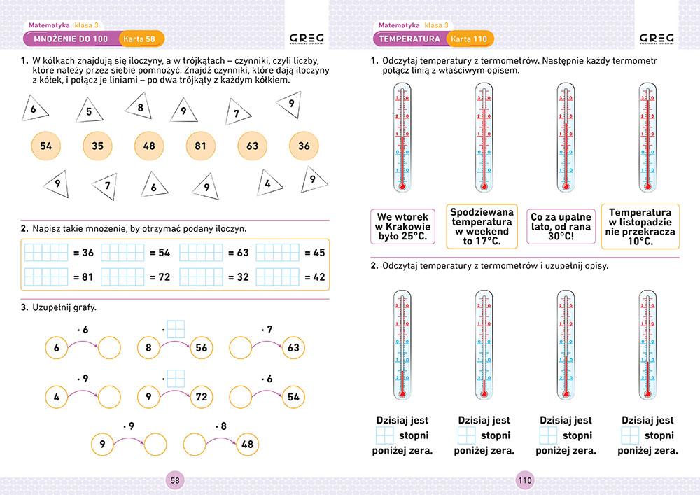 Dziêki tej publikacji trzecioklasista zdobêdzie wszystkie przewidziane programem nowe umiejêtno¶ci i rozwinie wiedzê nabyt± w m³odszych klasach, co gwarantuje brak problemów z matematyk± w kolejnych klasach. Nauczy siê sprawnie pos³ugiwaæ siê liczbami do 1 000 000, dodawaæ, odejmowaæ, dzieliæ i mno¿yæ do 1 000, utrwali podstawow± wiedzê z geometrii i rozwinie my¶lenie abstrakcyjne, udoskonali pos³ugiwanie siê miarami i wagami takimi, jak kilogram, litr, metr, opanuje korzystanie z zegara, kalendarza i liczenie czasu, jak równie¿ rozwinie umiejêtno¶æ pos³ugiwania siê pieniêdzmi i sprawnego wykonywania na nich dzia³añ.