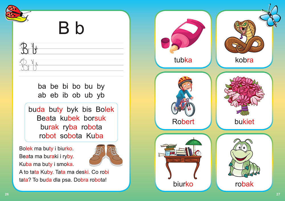 genialna książka do nauki czytania prosta i łatwe wyrazy. Moje dziecko w bardzo szybko nauczyło się czytać.