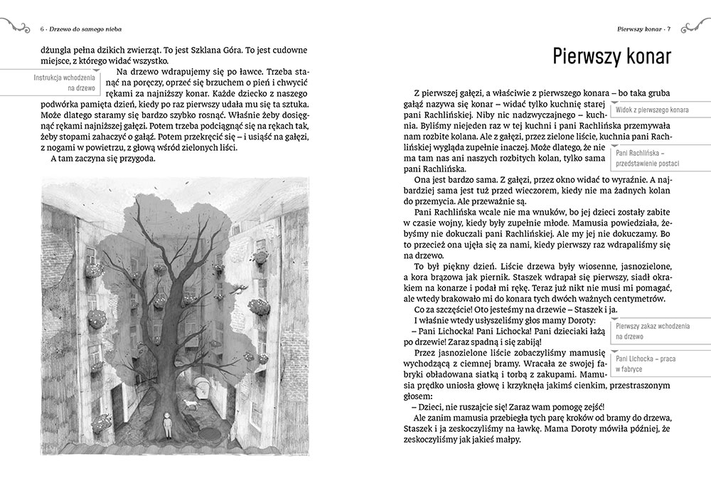 Miło jest znaleźć na rynku wydawniczym pięknie wydaną książkę dla dzieci, o ciekawej fabule, ślicznie ilustrowaną i z wartościowym przekazem, a jeszcze dodatkowo dowiedzieć się, że taka perełka znajduje się na liście lektur dla klas 1- 3 szkoły podstawowej. W tym przypadku mamy przyjemne z pożytecznym (...) Drzewo do samego nieba to piękna, ciepła i mądra opowieść o roli przyrody i wyobraźni, o przyjaźni, lojalności, życzliwości sąsiedzkiej pomocy i solidarności. Autorka uniknęła prawienia morałów, oddała głos dziecięcym bohaterom, z którymi łatwo utożsamią się również współczesne urwisy. Dziś też włażą na drzewa i potrafią świetnie się bawić dzięki wyobraźni.