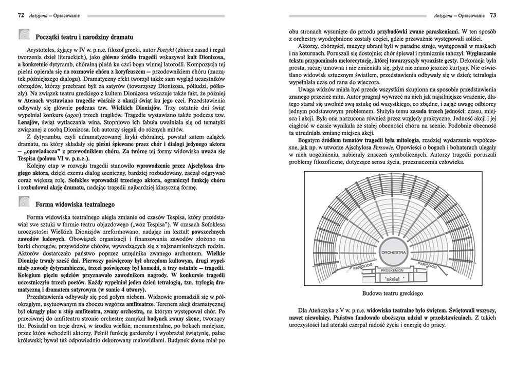 Wydanie Antologii tragedii greckiej kompletne bez skrótów i cięć w treści. W tym wydaniu znajdziesz odpowiedzi na pytania z podręcznika - „pewniak na teście”, czyli wskazanie zagadnień, które zwykle pojawiają się w pytaniach z danej lektury we wszelkich testach sprawdzających wiedzę, a także w podręcznikach i na klasówkach. Książka zawiera pełen tekst lektury. Na końcu książki zamieszczono opracowanie, w którym znajduje się bardzo szczegółowe streszczenie oraz drugie skrócone, ułatwiające szybkie przygotowanie się przed lekcją. Opracowanie zawiera ponadto plan wydarzeń, wnikliwie wyjaśnioną problematykę oraz szerokie charakterystyki bohaterów.