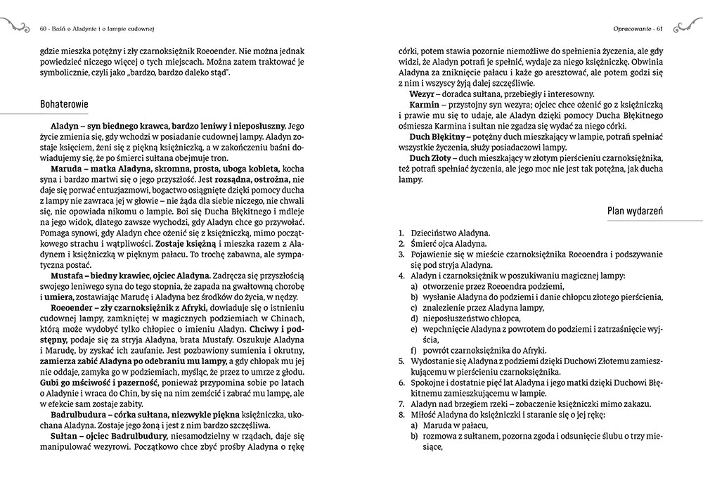 Postaci Aladyna nie trzeba przedstawiać - ten chłopiec, który z ubogiego syna krawca stał się bogatym i potężnym księciem, a wszystko dzięki pewnej magicznej lampie, znany jest już kolejnym pokoleniom małych miłośników baśni. Poczytajcie o leniwym, ale zawsze mającym szczęście Aladynie, złym czarnoksiężniku o niemożliwym do wymówienia imieniu, potężnym błękitnym dżinnie, mieszkającym w zaczarowanej lampie, cudnej urody księżniczce i ich niesamowitych przygodach!