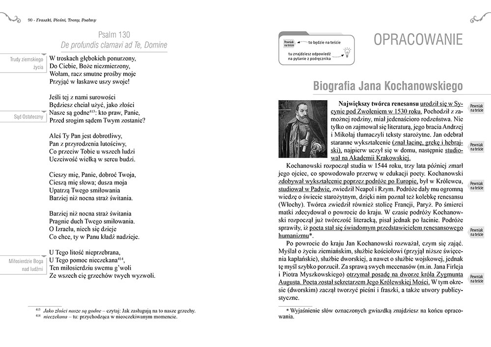 Wybór dzieł dostosowany został do najnowszej podstawy programowej. Zadowoli on każdego, kto zapragnie przypomnieć sobie twórczość wybitnego renesansowego poety. Życzymy owocnej lektury!