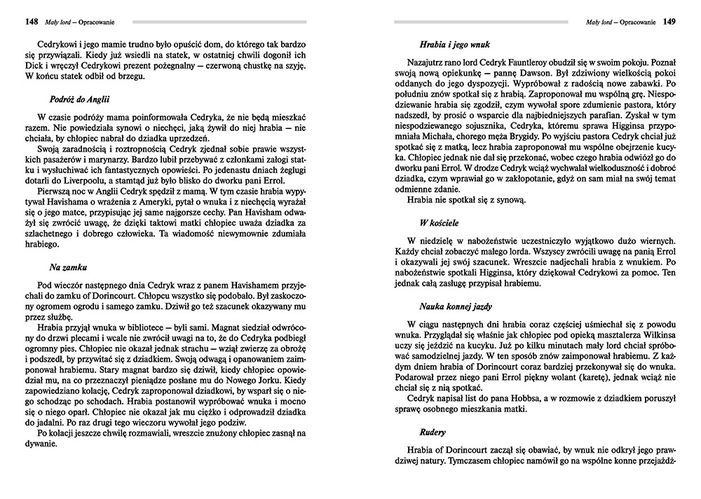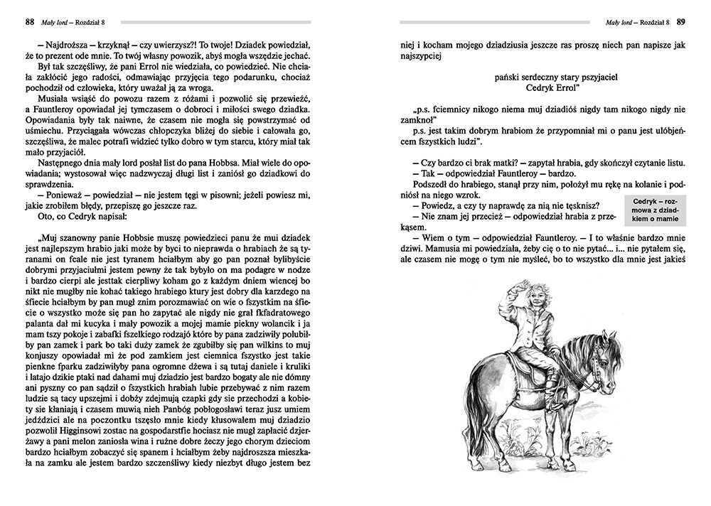 Przedstawiamy jedn± z najpiêkniejszych powie¶ci dla m³odzie¿y autorstwa Frances Hodgson Burnett. Ma³y ch³opiec, Cedryk, po ¶mierci swojego taty razem z mam± przeprowadza siê z Ameryki do angielskiej posiad³o¶ci swojego bardzo bogatego dziadka. Hrabia of Dorincourt wcale nie jest zachwycony nowymi mieszkañcami posiad³o¶ci...