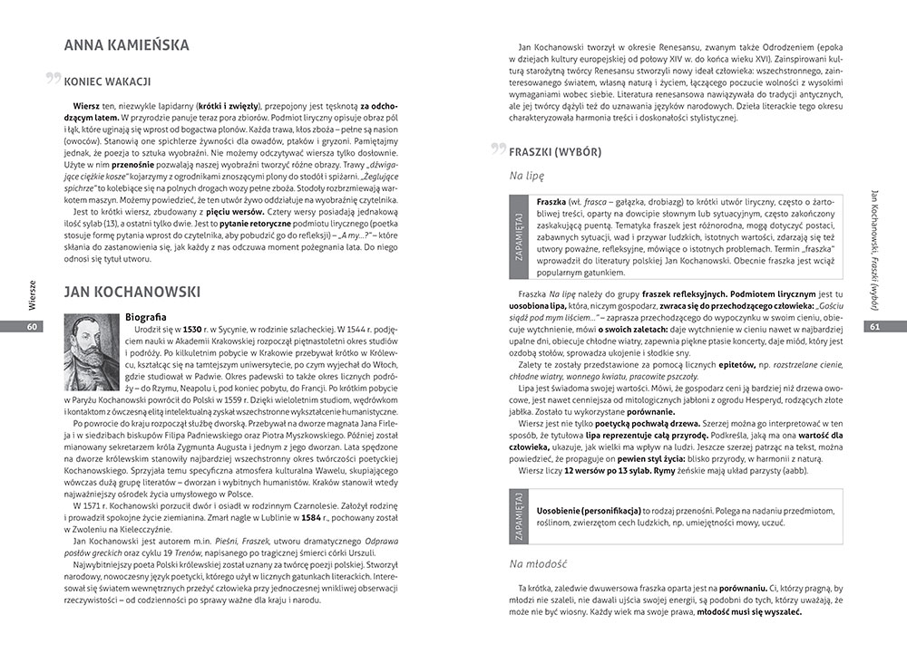 Ksi±¿ka dla klas 4-6 zawiera omówienia wszystkich znajduj±cych siê w podstawie lektur, zarówno obowi±zkowych, jak i uzupe³niaj±cych, oraz interpretacje i analizy najczê¶ciej omawianych wierszy wymienionych poetów. S± tutaj biografie, streszczenia, charakterystyki bohaterów, problematyka - wszystkie najwa¿niejsze informacje o lekturze w jednym miejscu.